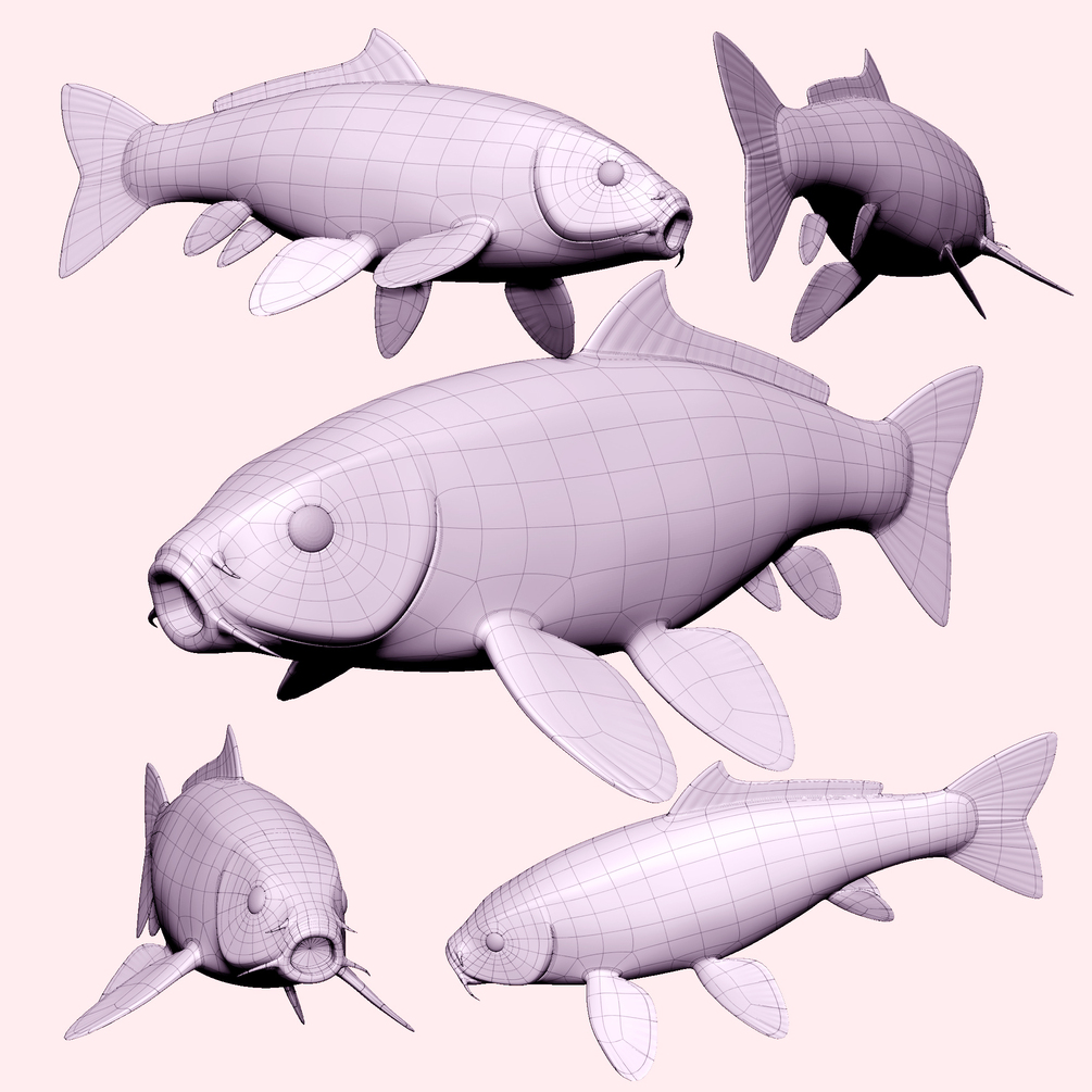 This fish mesh is one that I originally created as part of an art challenge on ArtStation. I decided to put it to use in my current project on ZBrush LIVE (you can find my streaming schedule on the Pixologic ZBrush LIVE site) and modify it to be more like an over-grown goldfish. I have decided to make both versions available to you for if it is something useful. Have fun!